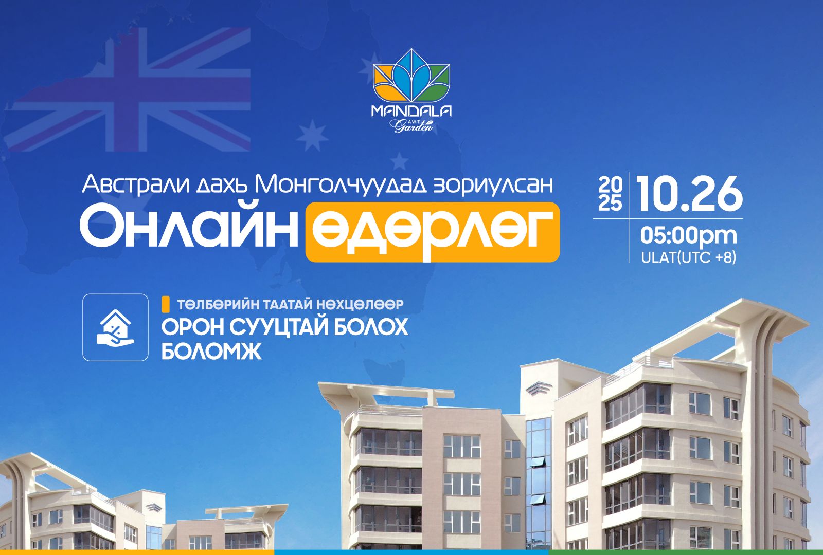 Монголдоо орон сууц авахаар хайж байгаа бол анхаарлаа нааш! “Мандала Гарден” цогцолбор хороолол Австрали дахь Монголчууддаа зориулан төлбөрийн уян хатан нөхцөлөөр орон сууц захиалах боломжийг танилцуулах онлайн өдөрлөг зохион байгуулах гэж байна. 📢