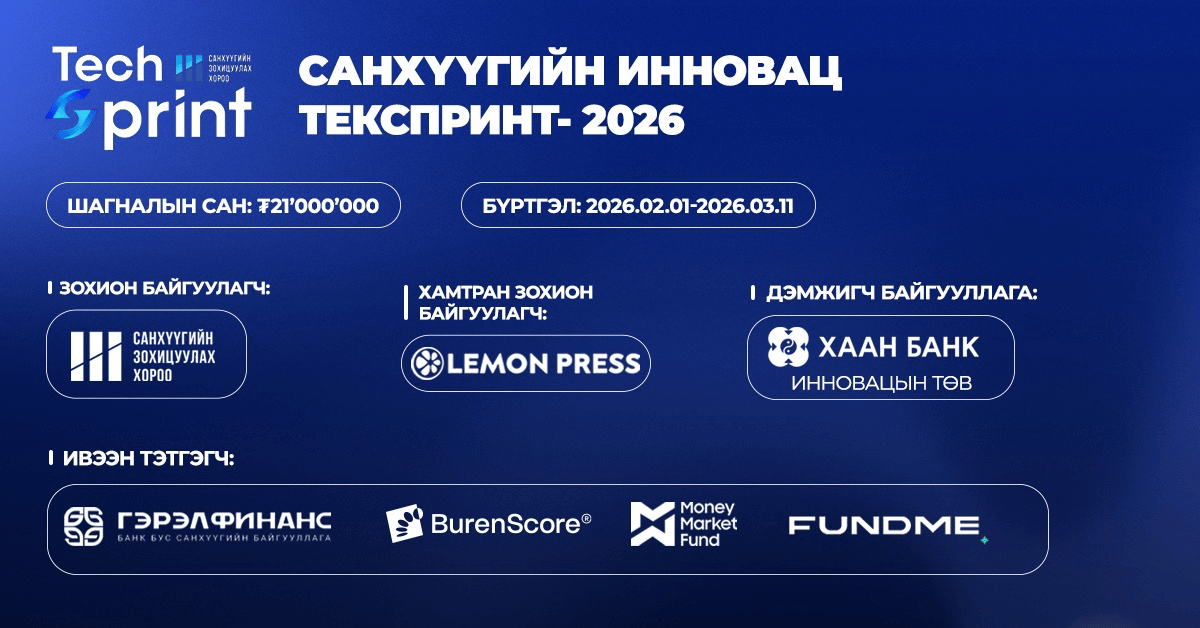 “Санхүүгийн инновац текспринт-2026” уралдааны бүртгэл өнөөдөр хаагдана. Санхүүгийн Зохицуулах Хороо болон Lemon Press хамтран уг уралдааныг хариуцлагатай зээл, иргэдийн өрийн удирдлагыг сайжруулах технологийн шийдлүүдийг шалгаруулах зорилготойгоор зохион байгуулж байна. 🍋