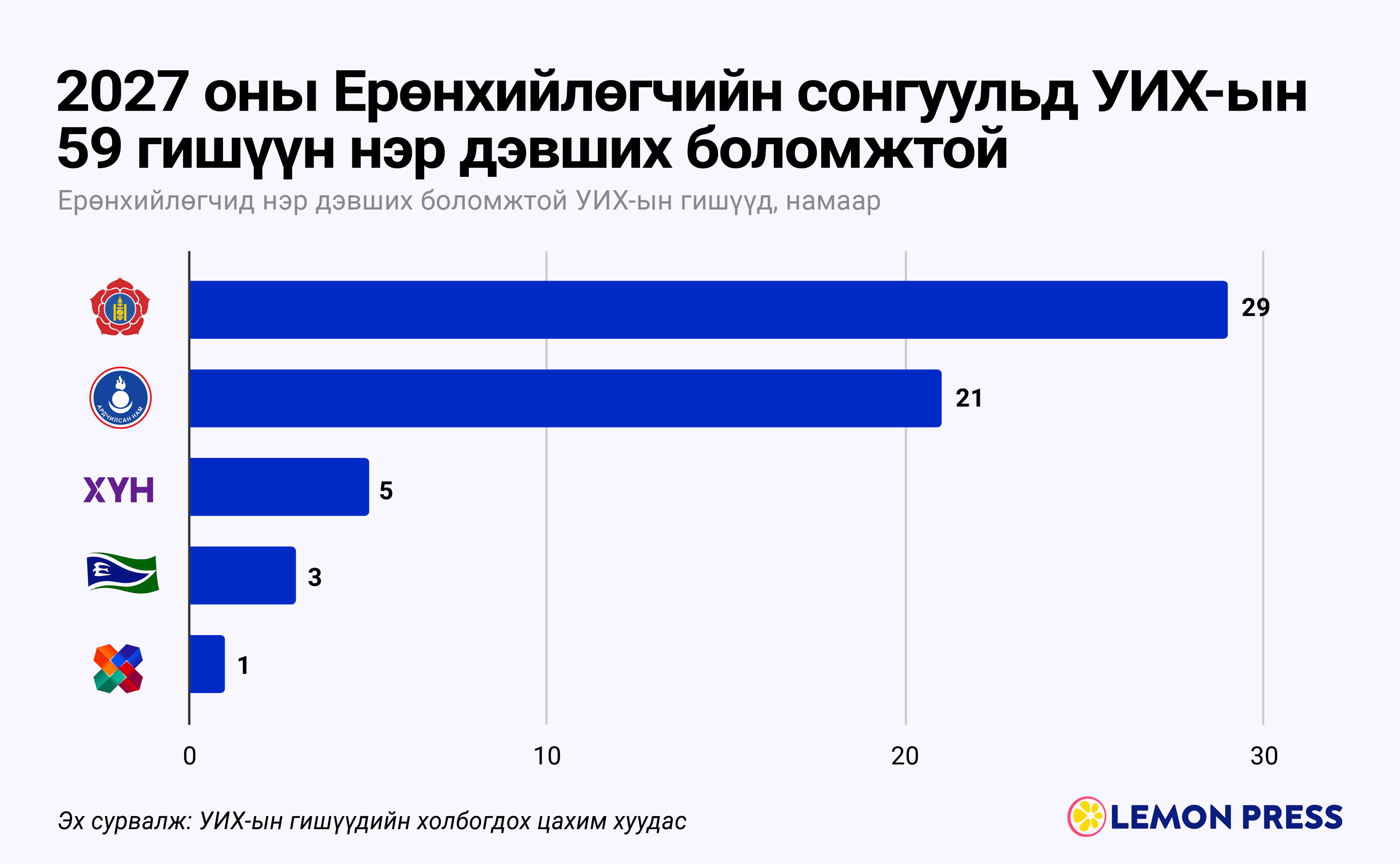 Эдгээр өдрүүдэд улс төрд халуухан үйл явдлууд ар араасаа цуварсаар байна. Гол шалтгаан нь мэдээж 2027 оны Ерөнхийлөгчийн сонгууль. Тэгвэл олны дунд хамгийн их хүлээлттэй 2027 оны Ерөнхийлөгчийн сонгуульд УИХ-аас хэр олон хүн нэр дэвших боломжтойг харцгаая.