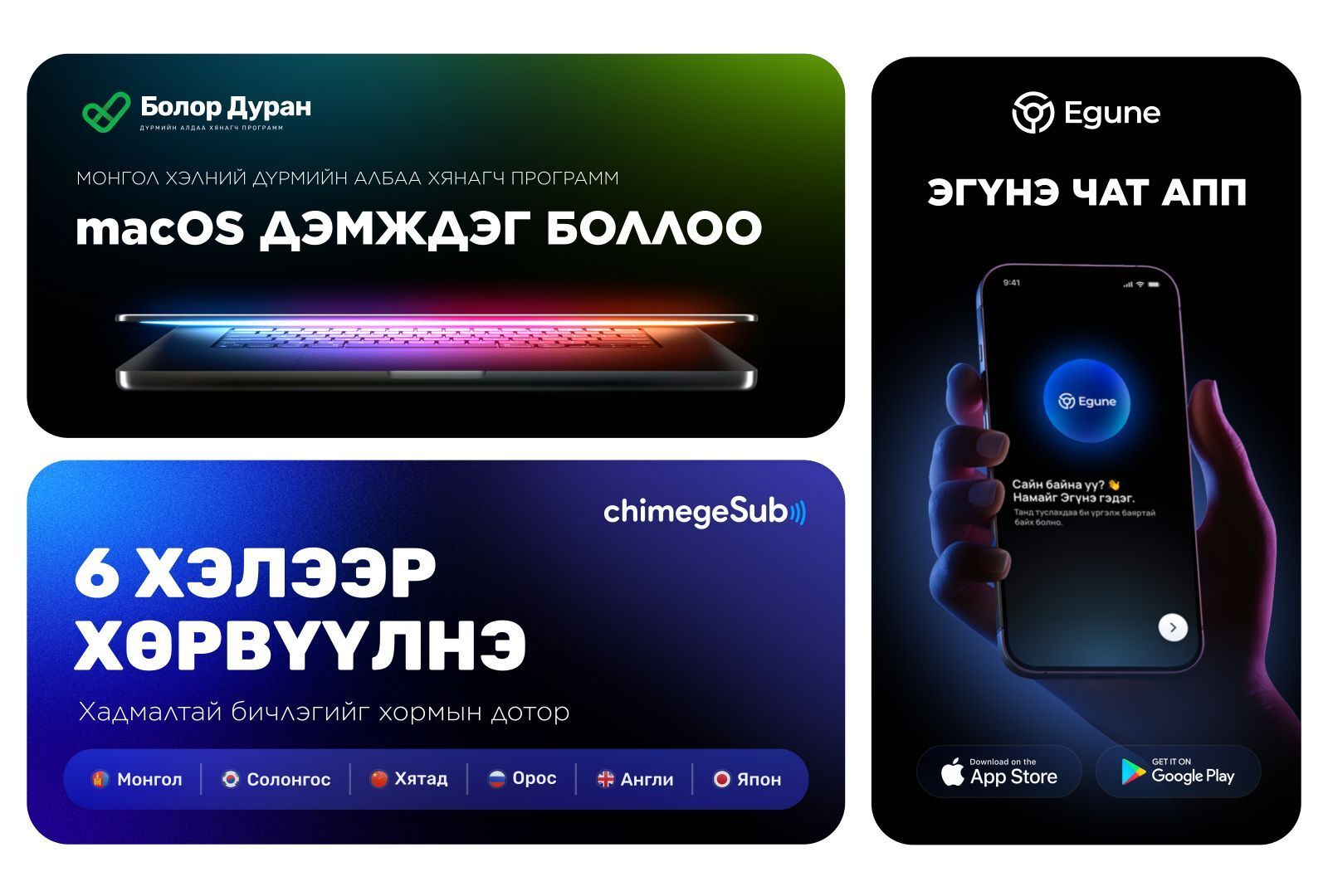 Харин Монголын анхны үндэсний хиймэл оюун Egune AI-н хувьд “Egune Chat” апп-тай болсон байна шүү. Тус апп-аар цаг агаар, түгжрэл, автобусны маршрутаа харах, хамгийн гол нь дуу хоолойгоороо ярилцах боломжтой гэдгээрээ онцлог.