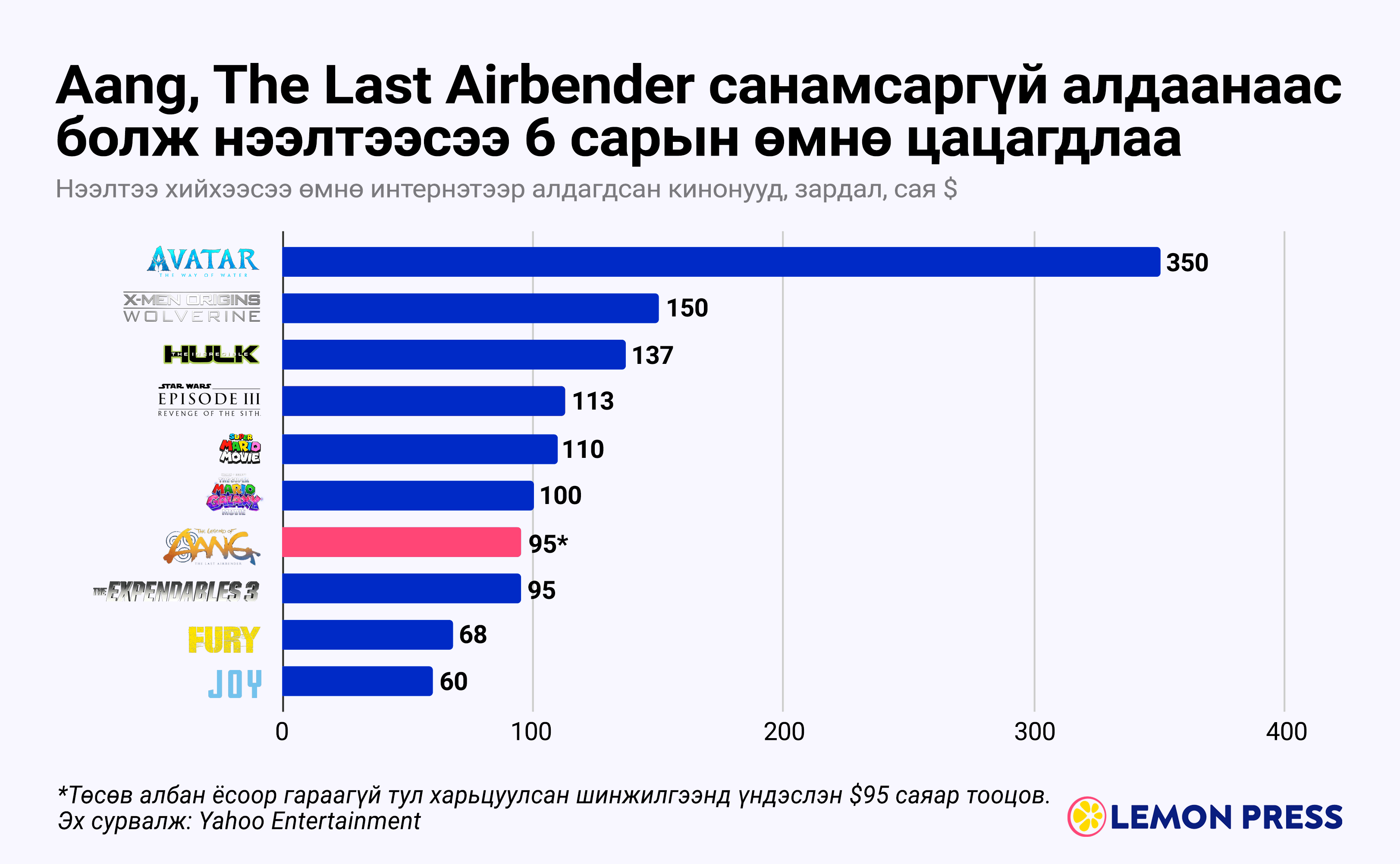 2026 оны 10-р сард нээлтээ хийх байсан Avatar: Aang, The Last Airbender-н бичлэг задрахад ямар нэг гадны нөлөө байсангүй. Эх сурвалжийн мэдээллээр, тус киног хийсэн студийн ажилтан санамсаргүйгээр имейл андууран X платформын нэгэн хэрэглэгч рүү бүтэн киног илгээснээс энэ бүхэн үүдэлтэй аж. Эхэндээ тус хэрэглэгч киноны 3 гаруй минутын бичлэгийг нийтэлсэн бөгөөд хүмүүс AI-р бүтээгдсэн байж магадгүй хэмээн сэжиглэж байв.