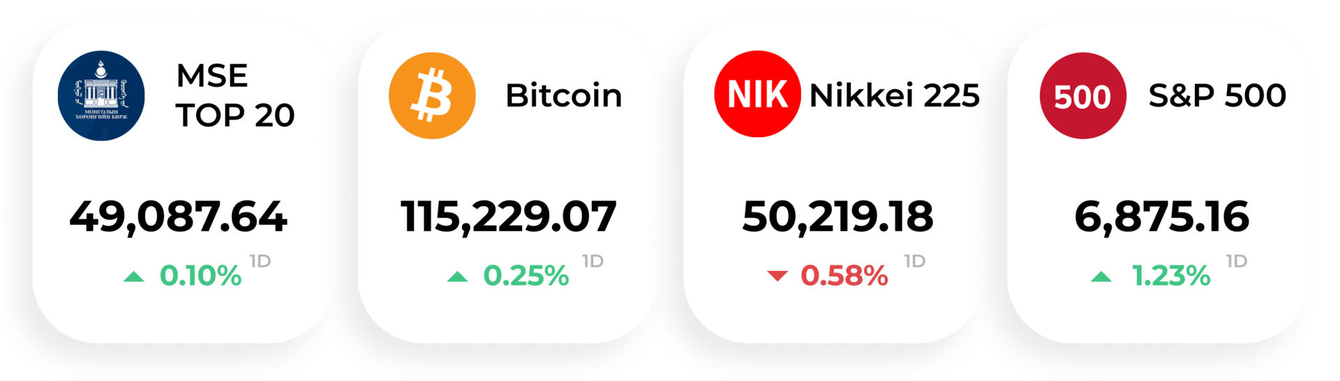 KHAN: ХААН Банк Их Британийн FTSE Russell-н Frontier Market индексэд багтсан анхны Монгол компани болжээ. Уг индексэд компаниудын санхүүгийн байдал, зах зээлийн үнэлгээ, хөрвөх чадвар, удирдлага зэрэг олон үзүүлэлтийг хардаг ба Монголоос анх удаа $KHAN FTSE Russell-н Frontier Mid болон Large/ Mid ангилалд багтсан нь үйл явдал аж. Сонирхуулахад, компанийн нэгж хувьцааны үнэ он гарснаас хойш 11.4%, 2024 оны мөн үеэс 26.6% тус тус өсөж ₮1,282-т хүрээд байна.