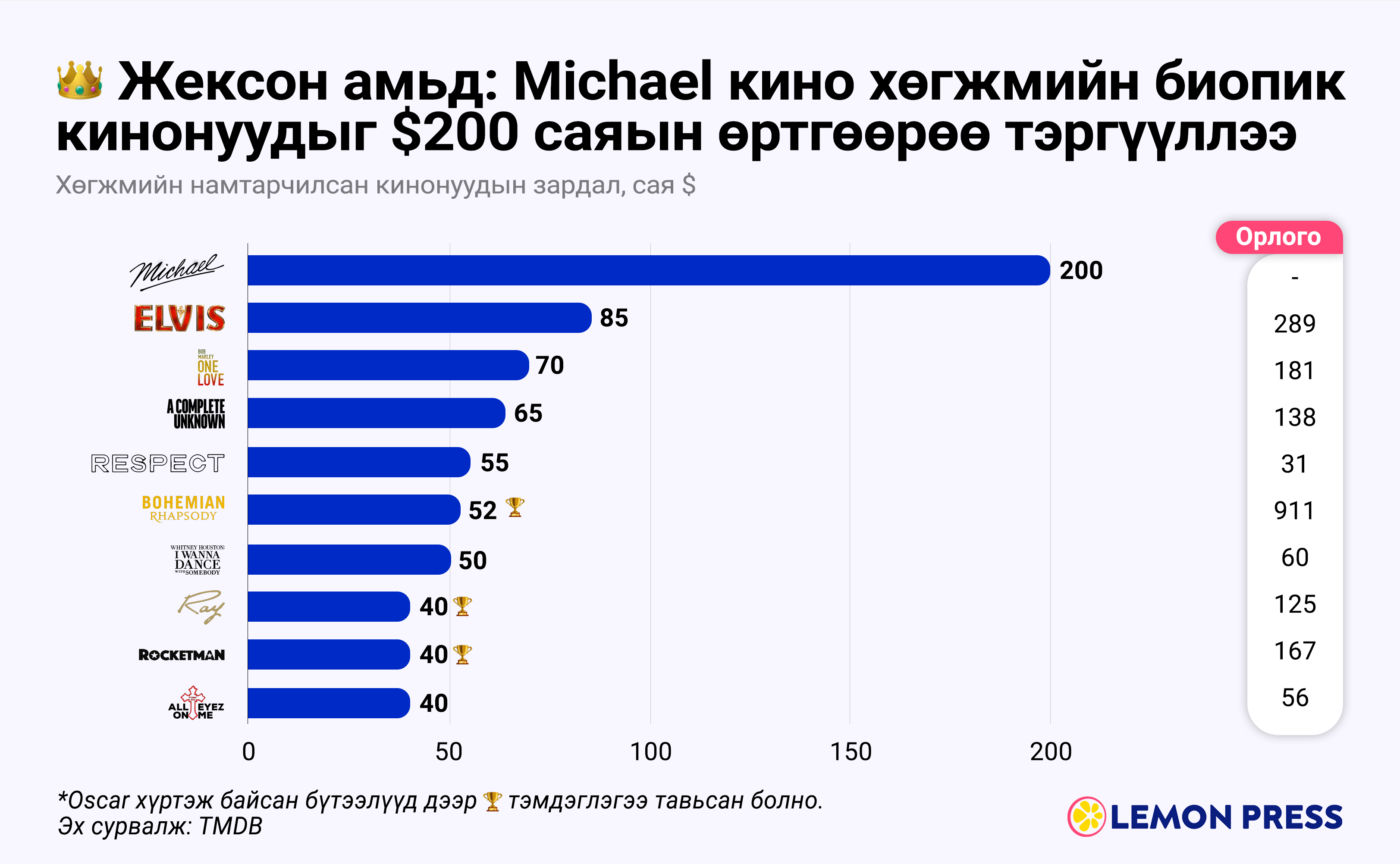Манай гаргийн түүхэн дэх хамгийн алдартай уран бүтээлчдийн нэг Майкл Жексоны тухай өгүүлэх Michael кино нээлтээ хийхэд 1 хоног үлджээ. Тэгвэл дуу хөгжим, кино урлагт хайртай лимонууддаа зориулаад энэ кинотой холбоотой сонирхолтой мэдээллийг түүвэрлэн хүргэе.